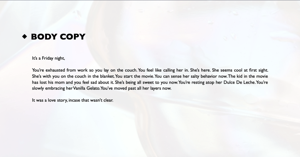 Creative Campaign: Talenti Ice-creams Share this: Share on X (Opens in new window) X Share on Facebook (Opens in new window) Facebook Like Loading...